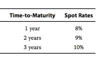 这里题目的意思是每年的spot rate是单独一个表格,对于所有债券来说。也就是第一年spot rate,第二年spot rate,第三年spot rate分别是多少的意思。
