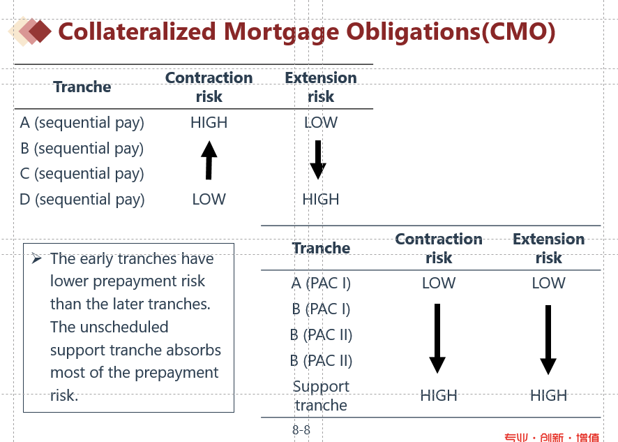 可以理解为:ABS是一个比较宽泛的产品,包含CMO(分为两类:sequential-pay CMO和有support tranches-CMO),我们可以用这两类CMO分别解释ABS受到Prepayment的影响
