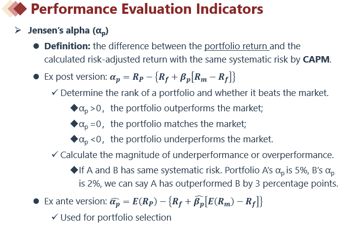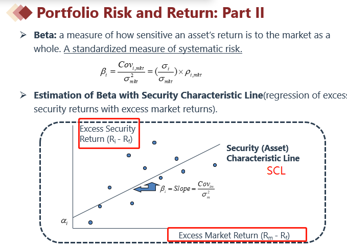 SCL的表达式(题目描述的是SCL的横轴和纵轴坐标)可以转化为Jense´s alpha的表达式(讲义截图有公式展示):