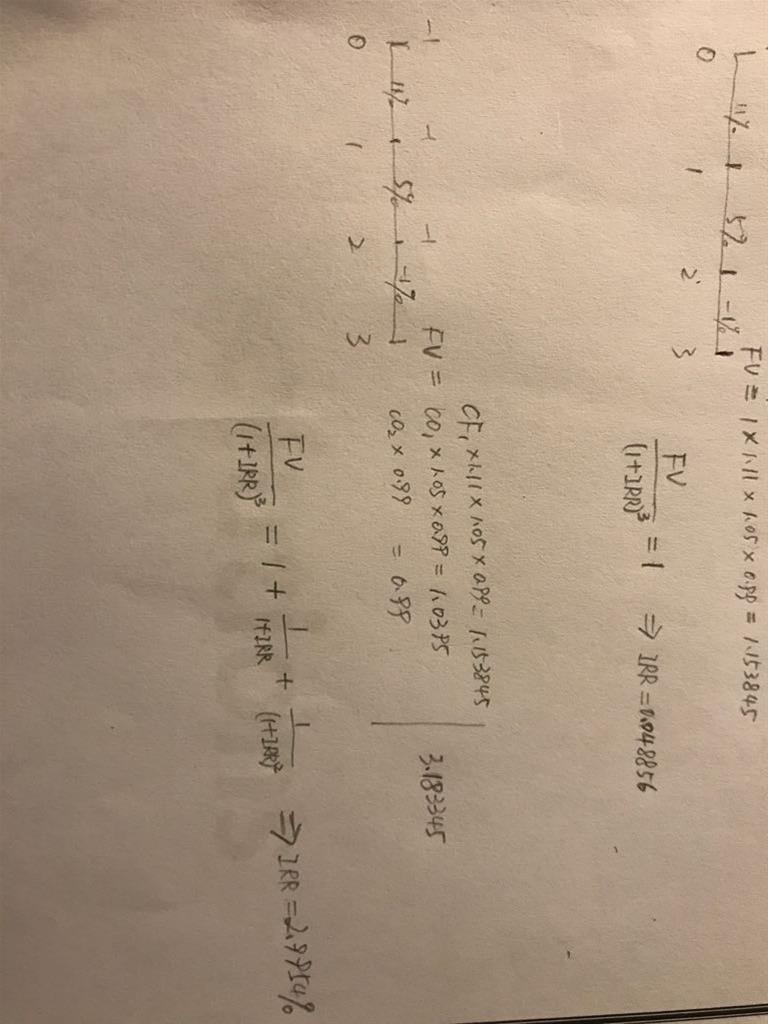 同学你好,这题本来没有现金流,但是题目说了是每年年初投入一笔现金流,所以我们假设投1块,然后用每一年的一块来计算复利;还有就是TWRR没有考虑这一元,本身已经告诉了收益率,只需要用这收益率去几何平均即可。