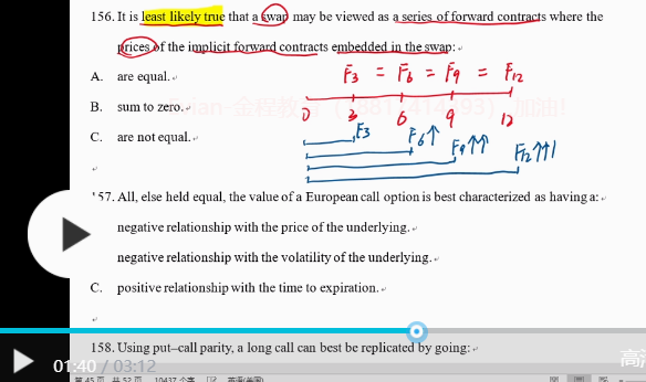 我听了1分30秒,老师对比的是蓝色的一系列远期合约,和swap没有关系