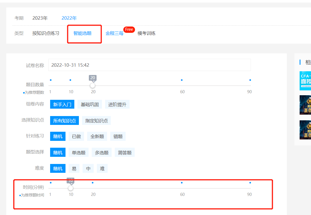 但咱们现在如果只是练习的话,可以自己设置做题时间的。
