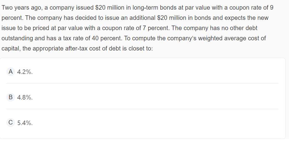 就是这道题。在新发债券后7%。计算还不需要考虑之前的9%,求company的WACC,是指公司的吧。