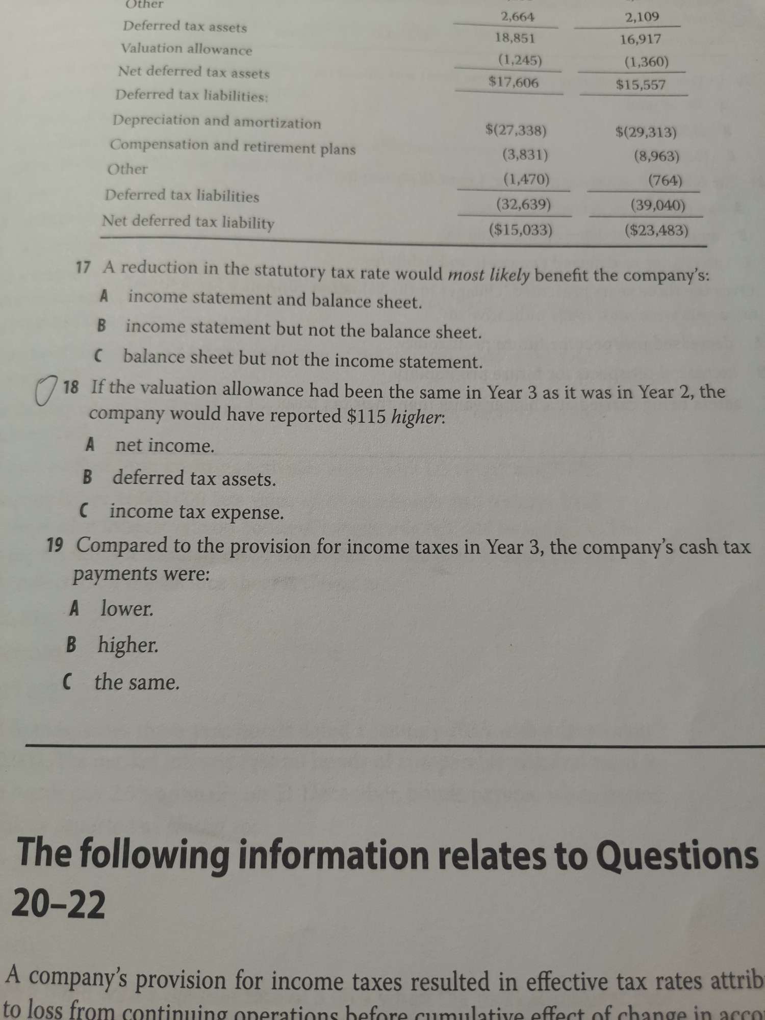 同学你好,题目意思是如果Y3的valuation allowance喝Y2的一样,那么公司报告的哪一项会高115