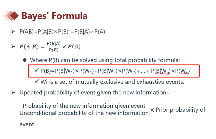 C表达的意思是“全概率公式”,如下截图,考虑所有Wi前提条件发生的情况下,B事件发生的概率(加总和)