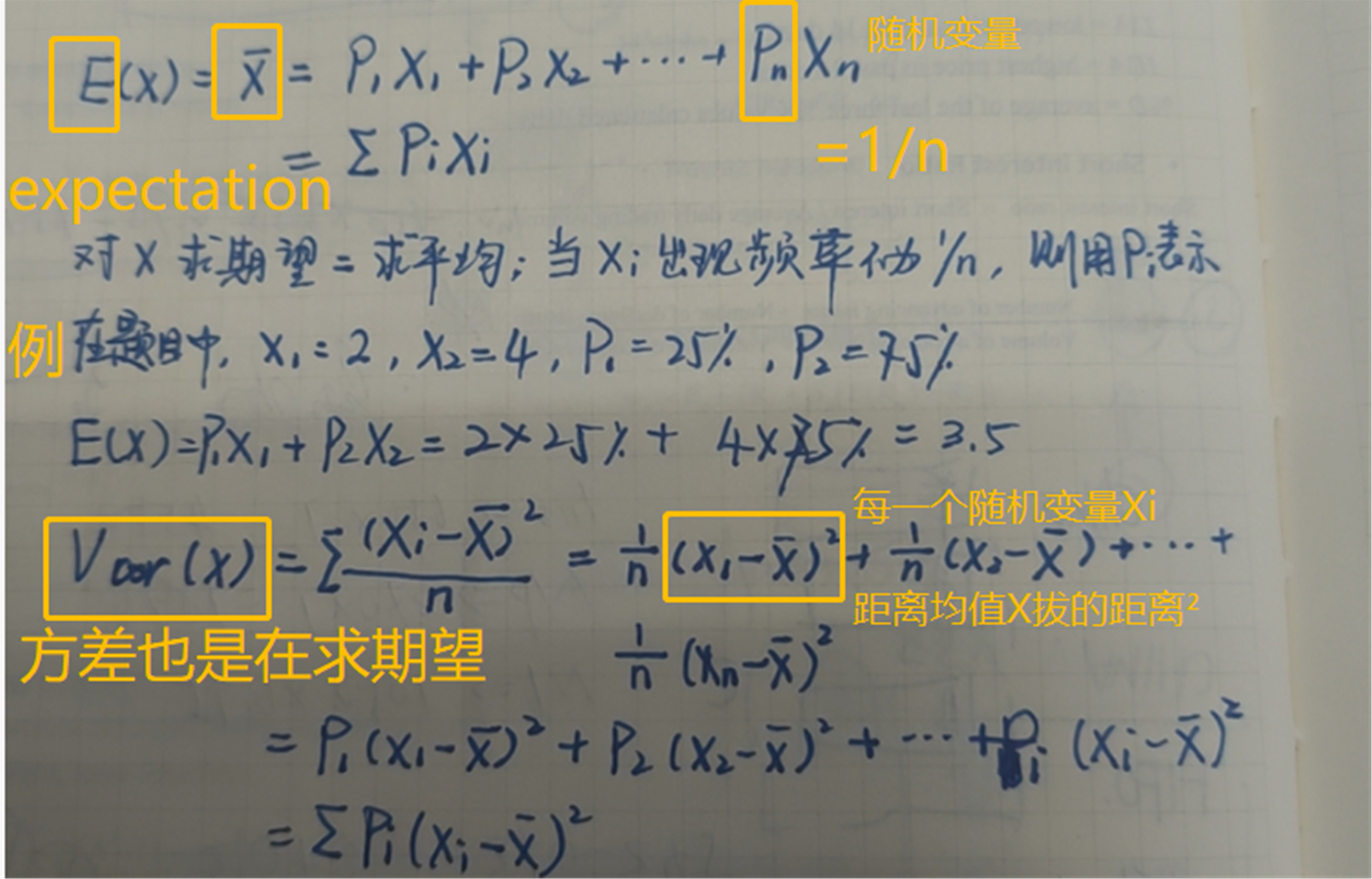 等于求一组随机变量距均值的“距离”,平方之后,求期望/求平均