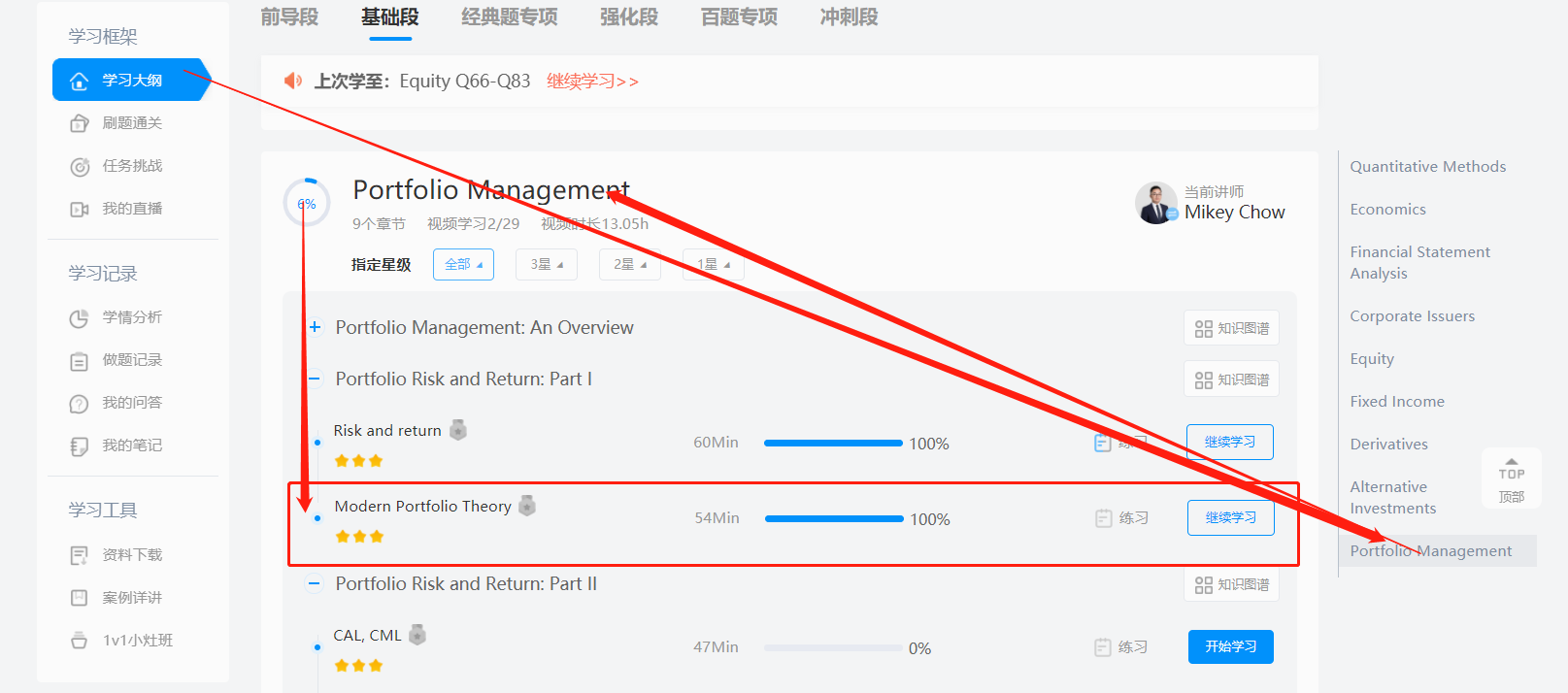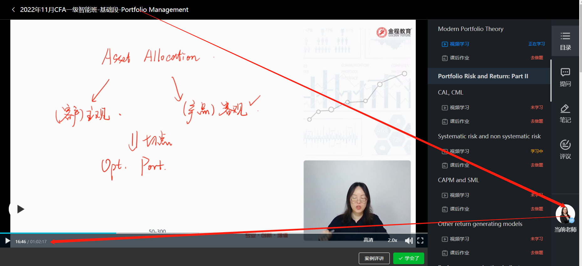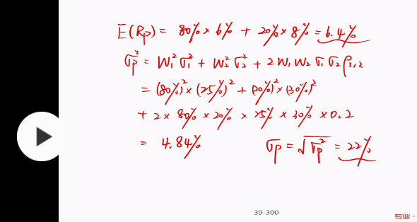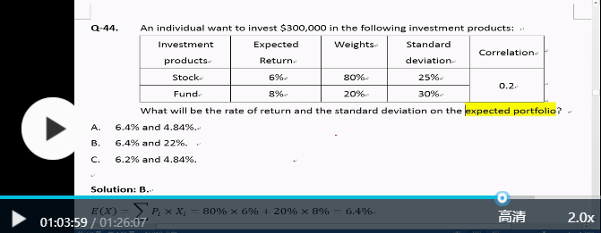 请问第44题,关于投资组合的方差的公式是如何推导得到的?可以去回顾课件的哪一部分?