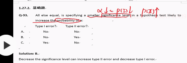 93题,为什么alpha下降一类错误的概率会下降,可以解释一下吗?