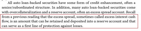 同学你好,因为这里题干问的是first line of loss protection也就是作为第一道防线的是哪一个,超额利差是作为防止损失的第一道防线。为乘风破浪的你【点赞】👍让我们知晓您对答疑服务的支持!~