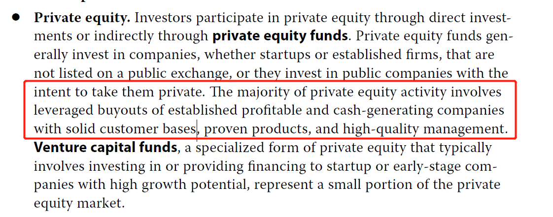 根据原版书中的定义,private equity从定义来看,主要指LBO。