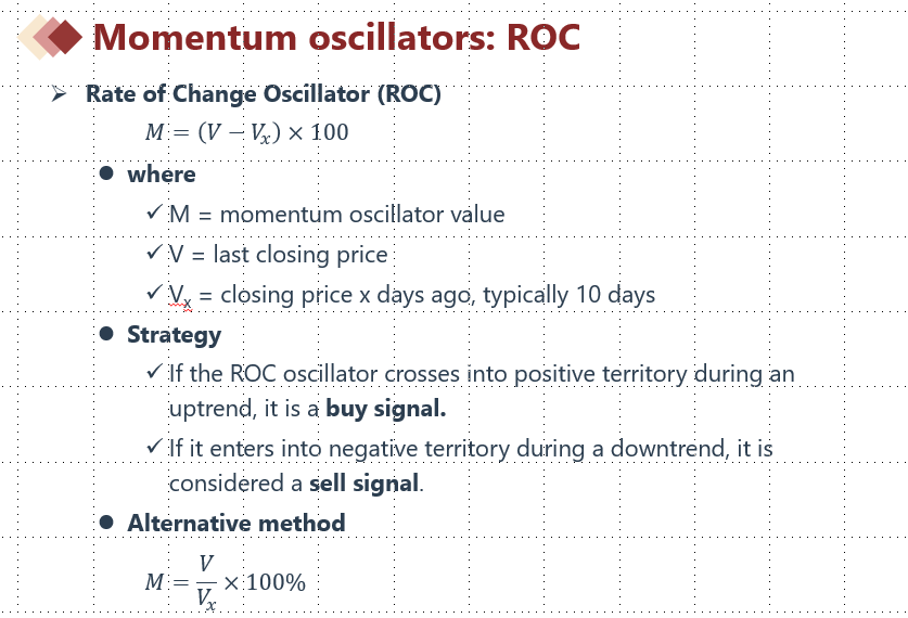 ROC 的计算公式中,V表示最近的收盘价,Vx表示10天前的收盘价,“两者之差/两者相除”来体现M的大小