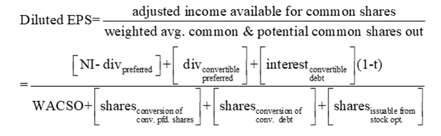 而在计算diluted eps时,由于本题中,转换为普通股的项目为series B(即可转换优先股),所以diluted eps的分子=net income-所有优先股的股利+可转换优先股的股利=net income-series A的股利-series B的股利+series B的股利=net income-series A的股利。diluted eps的完整公式如下: