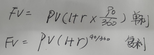 我想请问一下PV x(1+rx90/360)和PV x(1+r)^90/360有什么区别?