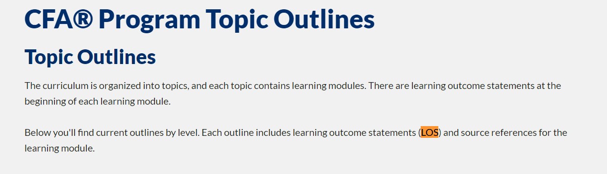 LOS= learning outcome statements=CFA考试考纲