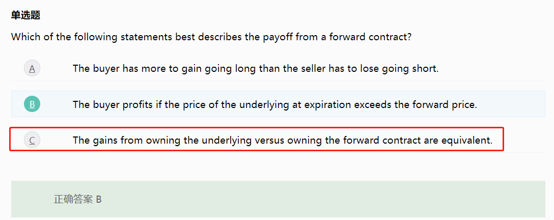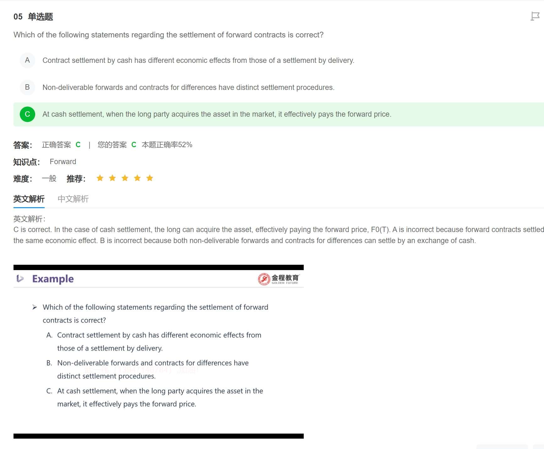 有点理解了,第5题的C是at settlement的实物价格,这道题,T0时刻,forward不需要支付钱,但实物是T0购买的。