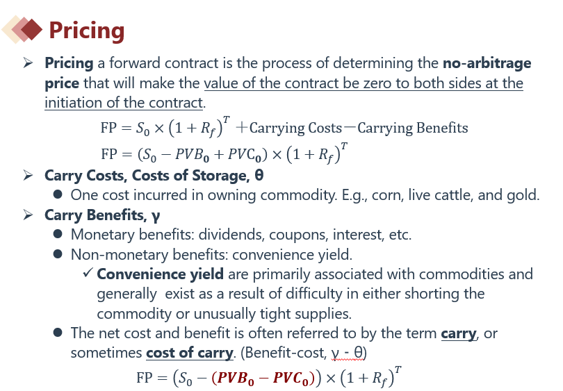 通式(在SP基础上charge 成本抵减收益):FP=(SP+PVCC-PVCB)x(1+Rf)^T