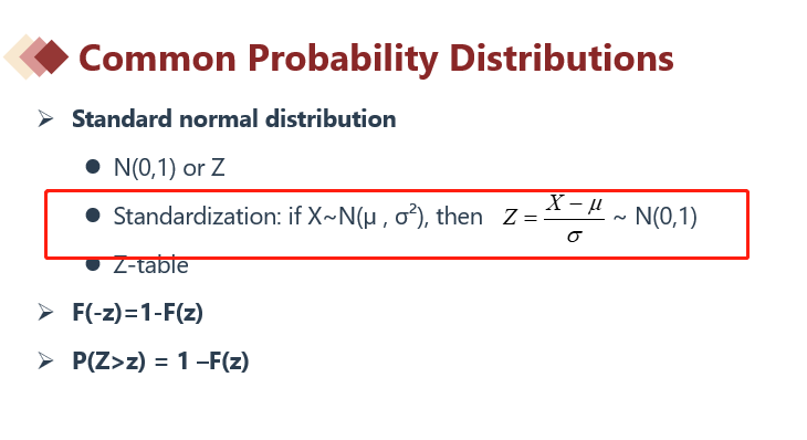 标准化之后分布看起来大小会变,但是区间对应的概率不会变,例如截图中,均值周围1.96倍红色阴影部分面积/总面积=概率不变