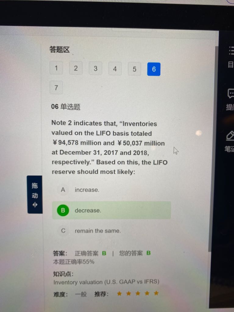 并没有要求根据题目LIFO reserve的基本信息来判断哈