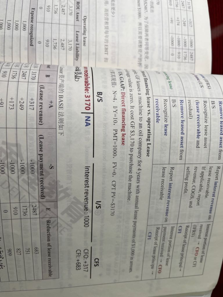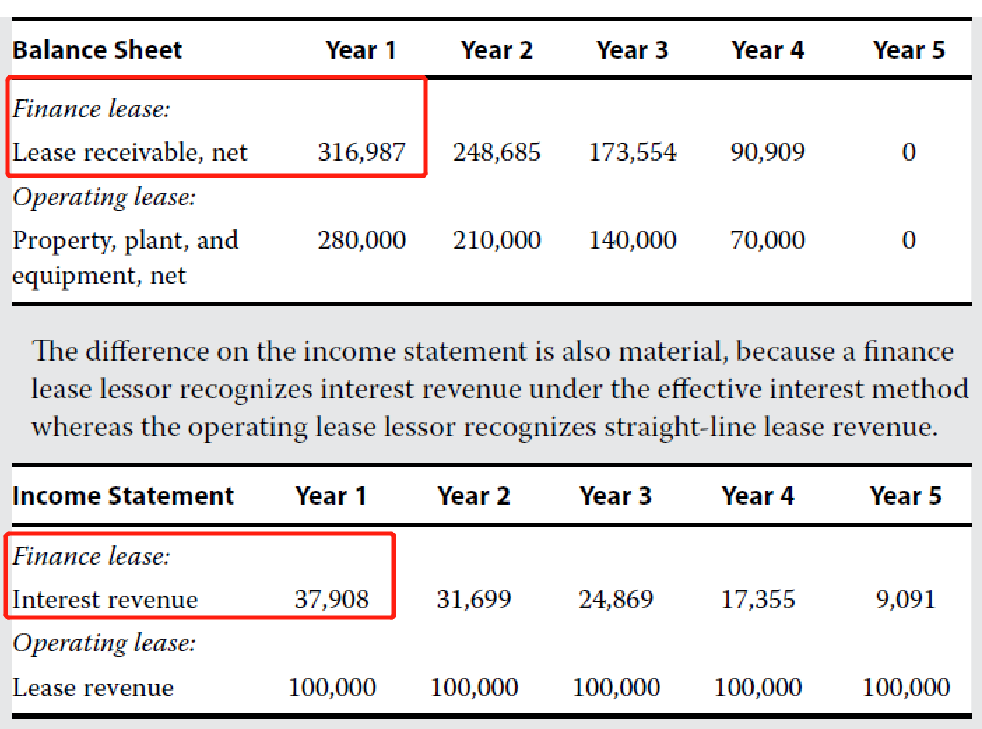 针对ifrs的lease和us gaap的finance lease,老师这里说利润表中记录的利息收入为317(假设第一年),但冲刺笔记里讲利润表要计提1000的利息收入,哪个正确呢?