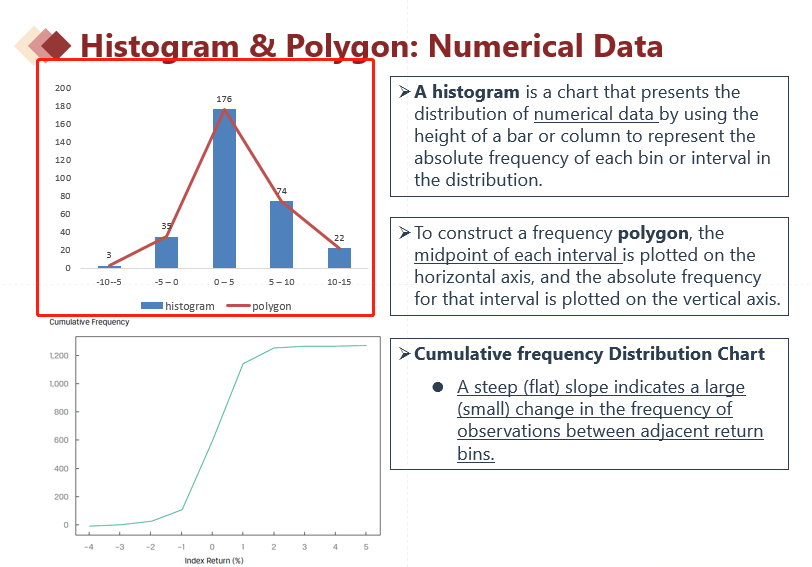 frequcency polygon是先有柱子(矩形条状),然后连接每个矩形的中点
