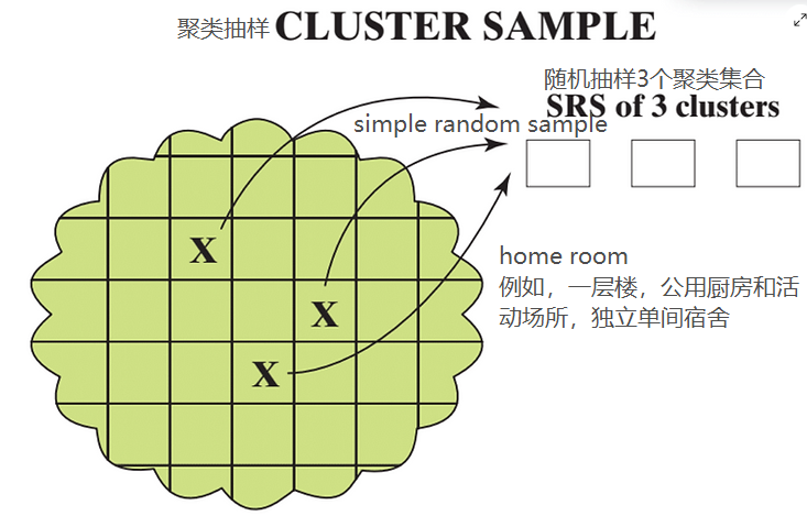 以复旦大学所有学生作为总体,按home room将总体分成聚类集合。在每个聚类集合中,学生都是不同的(多个年级)。