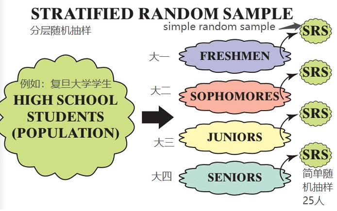 以学校所有复旦学生为总体,按年级将他们分成不同的subpopulation(阶层)。在每个阶层中,学生都是相似的属性(同一年级)。