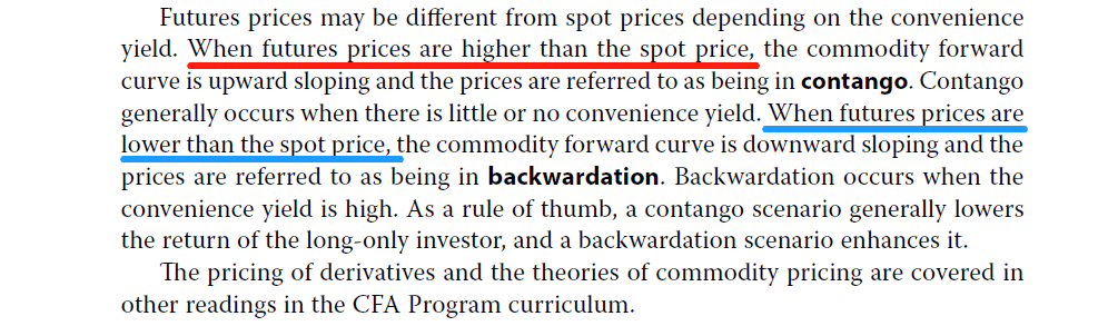 原版书对“Contango”和“backwardation”的定义从价格来判断,不从收益率判断
