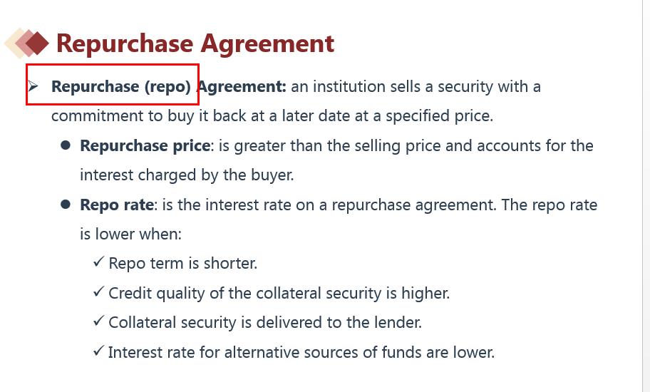 repo表示的就是Repurchase的意思,相当于是一个简写。见下图讲义。