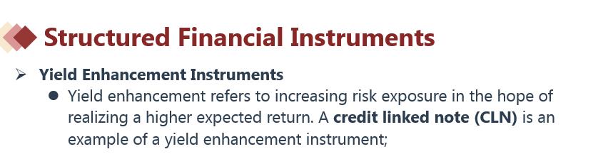 yield enhancement instrument指的是收益率提高工具,例如credit linked note(CLN),跟题目描述无关。