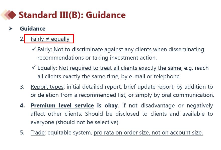 这道题是说必须公平的对待所有的客户,但公平不等于相等。见下图讲义。