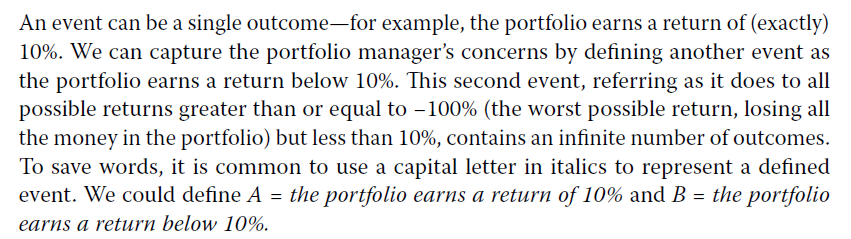 嗯嗯,是的,一个事件有至少一种可能性,也就是说,可以是唯一一种结果(outcome),也可以是无数结果。