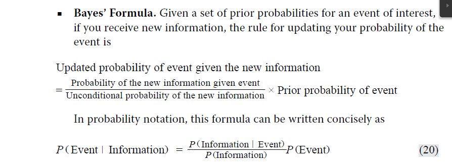 如果只有两件事情,计算条件概率和非条件概率,涉及180页公式。例如仅有A和B两件事情,计算的是在B发生的情况下A发生的概率。