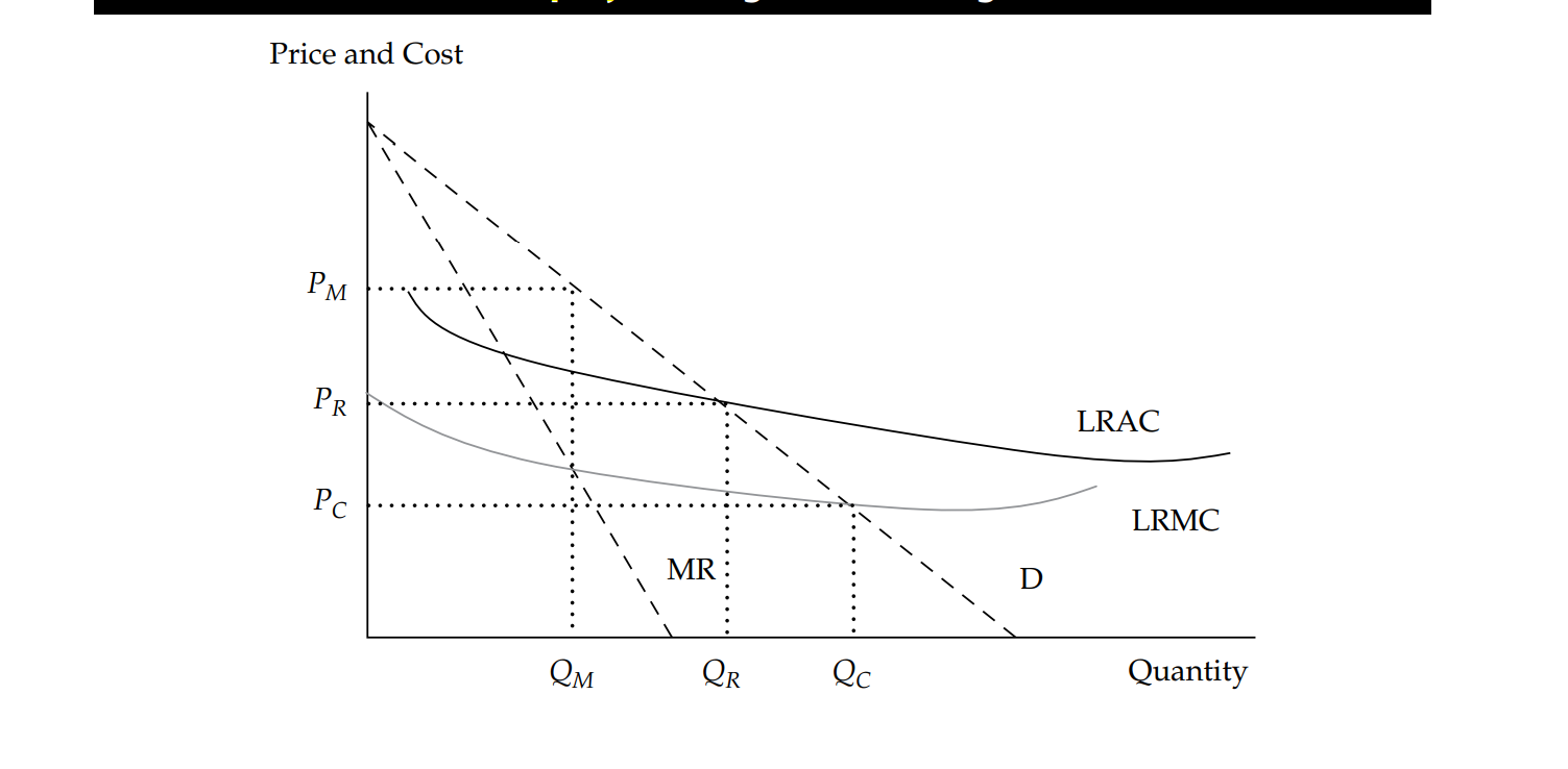 同时当产量为Qc的时候,对应的AC(平均成本)是要大于价格Pc的,于是收入<成本,所以把价格定在P=MC不是政府管制下的最优价格水平。