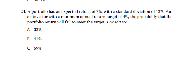 本题和后边的第24题(P300)有关系,F和“NORM.S.DIST”可以表示同一个含义:F(4%)=NORM.S.DIST((4% – 7%)/13%) = 40.87%.