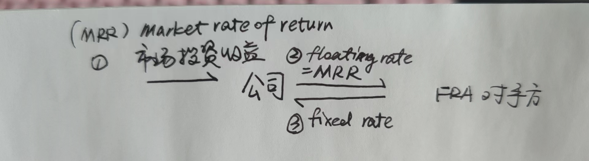 ②和③:FRA合约中支付浮动利率MRR,收到固定利率