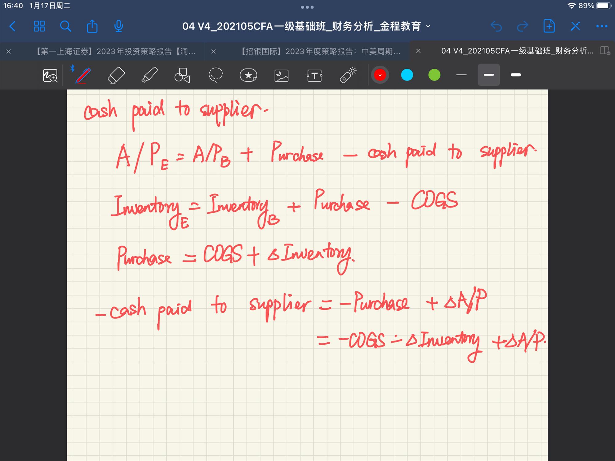 Cash paid to supplier= COGS +increase in inventory- increase in A/P 请解释为什么