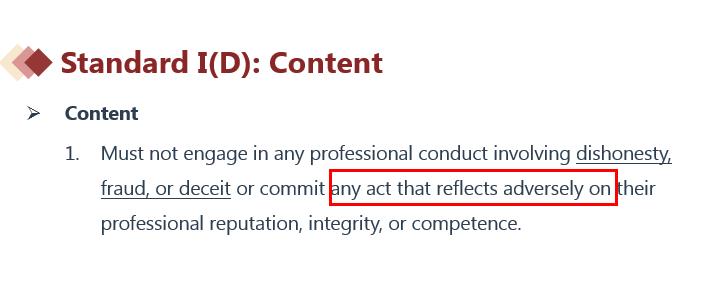 这一条说的不止是欺诈,见下图讲义。只要影响职业声誉、诚信或专业胜任能力,此时造成不利的影响,则违反misconduct