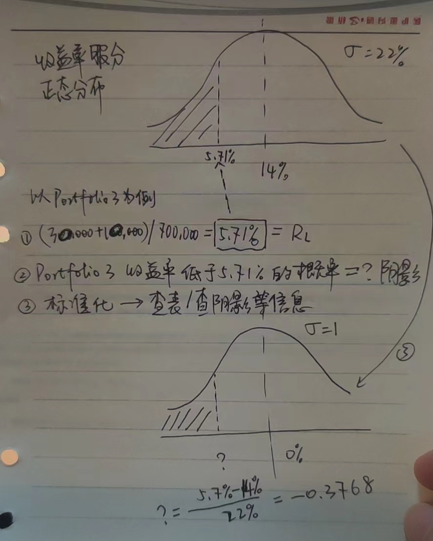 (2)这道题中的$700,000不是the risk free rate(given a normality assumption),同学你说的P264这段话是在对比罗伊第一安全比率和夏普比率,如下讲义截图1
