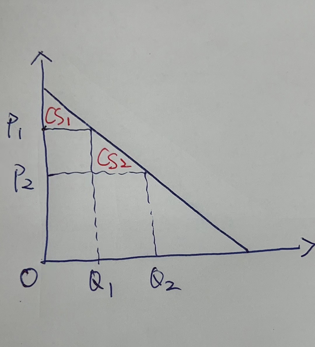 增加的消费者剩余为CS2。