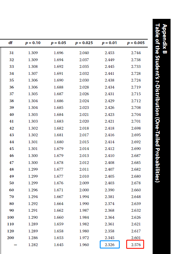 书(2022-L1V1)P379-Exhibit 15右侧的数据:正负2.576,正负2.326是怎么得出的?
