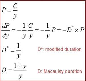 老师 我记得永续债券的duration 是1/r 。这里为什么会是1+1/r。 我记得是通过永续年金这个公式求导过来的。