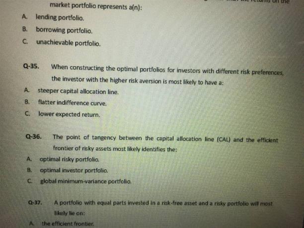 同学你好,因为C更对,CAL是rf和optimal的连线,那就有一条CAL上左边跟右边的区别,所以对于结论来说,不管怎么样,风险厌恶者的预期收益都会更低