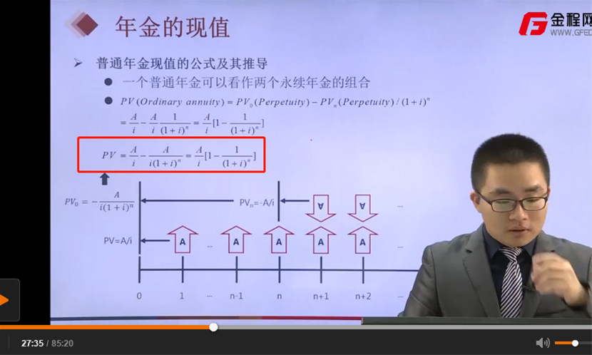 你写的普通年金现值公式中,最后的括号有点歪,其他都挺好,附图给你周琪老师的讲义公式