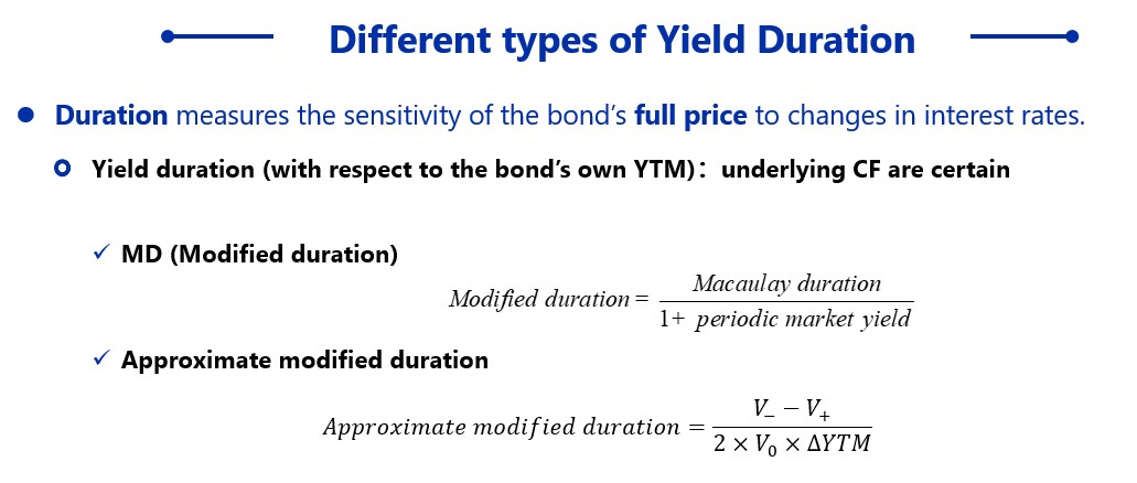久期在固定收益中有详细讲解,在Yield-Based Bond Duration Measures and Properties章节,第一个知识点,如下截图