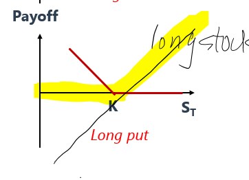 protective put(合成的截图2黄色)=long stock,long put(截图1中红色和黑色)