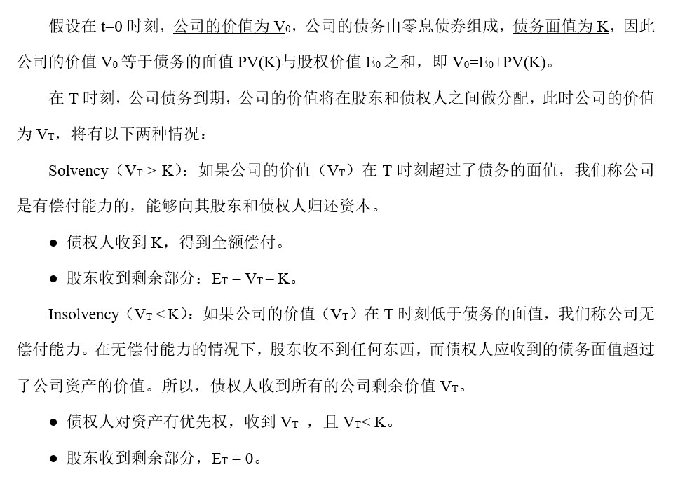 我们关注的是公司价值、股东价值、债权人(持有零息债)价值三者如何用衍生品的角度来解释