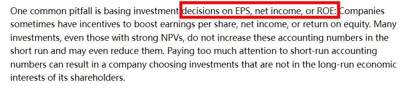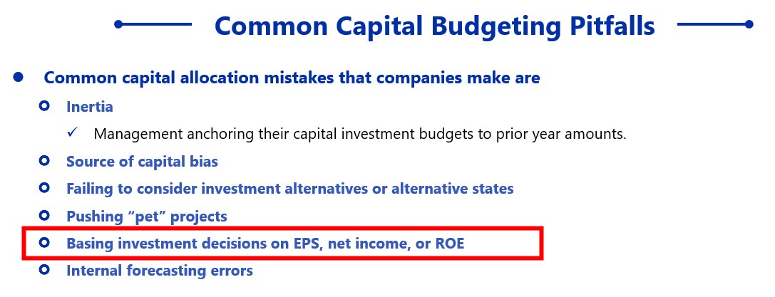 基于以下哪一个信息,会在资本配置决策时掉入陷阱(pitfall):
