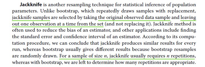 而每一次得到重抽样样本的时候,是随机在原有样本基础上删去一个数字,不是说原有样本中每个数据都会被删掉一次