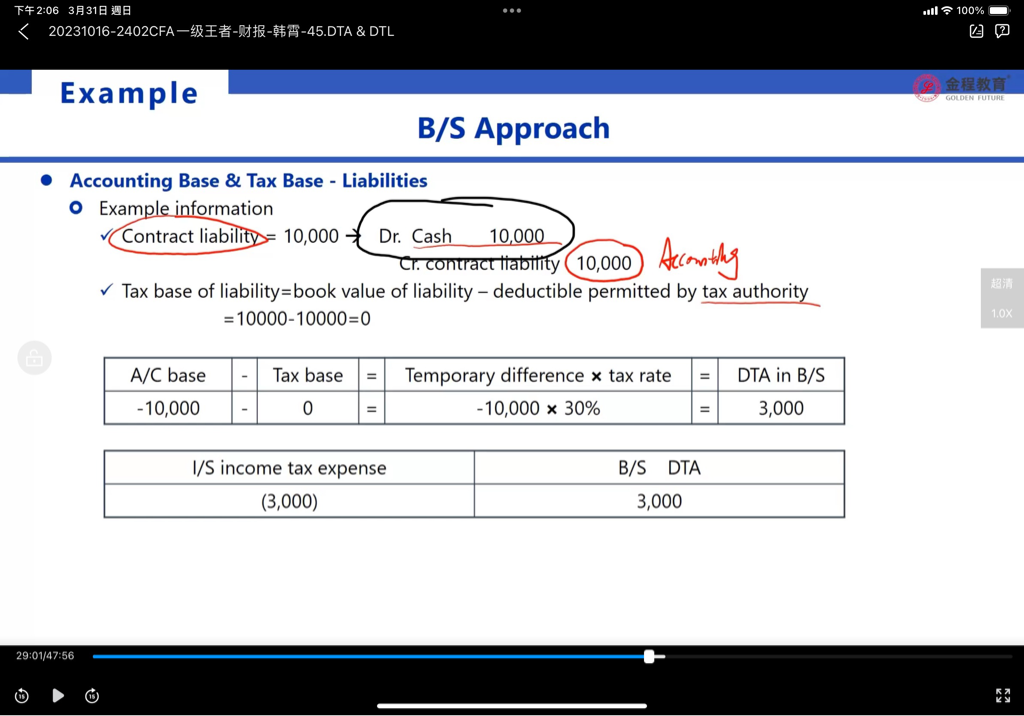 DTA $3000 我是明白怎算出來,但講義裡怎麼說Dr. 10,000 , 它是不是寫反了? 應該是我收到了Cr $10,000 ,同時增了加 10,000 Liabilities喔
