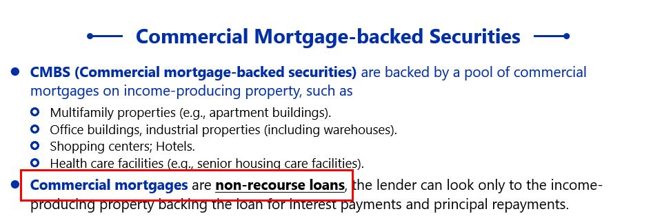 是个人住宅有追索权,这里讲的是商业住宅,CMBS,没有追索权